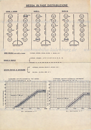 Blaupause „Messa in fase distribuzione“, Inbetriebnahme Lamborghini Espada , Jarama, Miura S, Miura SV, selten