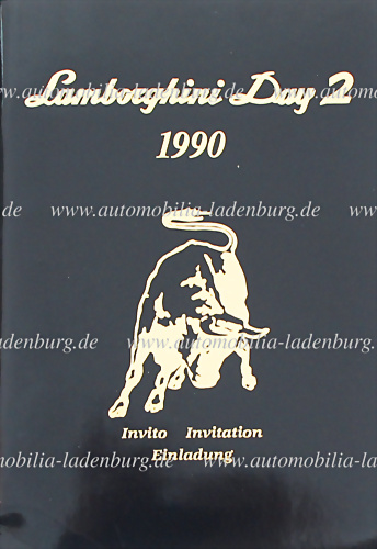 Original Einladung/Programmheft „Lamborghini Day 2“ 1990 mit Zahlungsbeleg der Teilnahmegebühr, 4 sprachig, guter Zustand