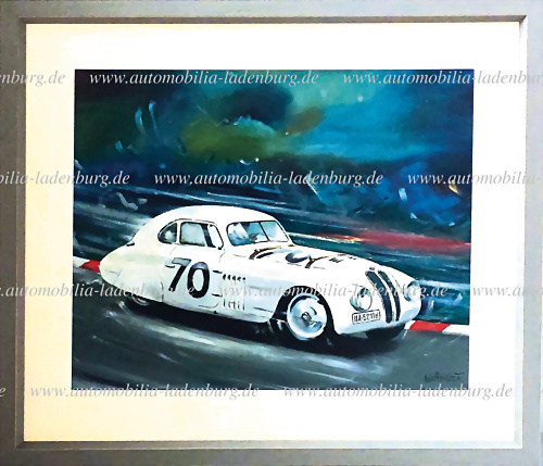 Aquarell, Fritz Huschke von Hanstein / Walter Bäumer auf BMW 328 Touring, Sieger der Mille Miglia 1940, signiert "Weinert", hochwertig gerahmt, 69x77cm