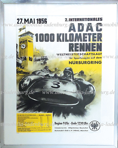 1956, original Veranstaltungsplakat "ADAC 1000KM Rennen Nürburgring 27.Mai.1956", im Passepartout, gerahmt 103x78cm
