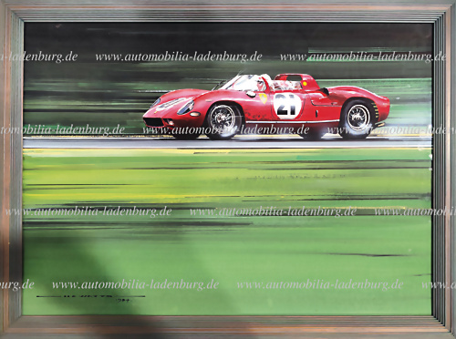 1984, original Gemälde von Nicholas Watts, Lorenzo Bandini / Ludovico Scarfiotti auf Ferrari 250P (#0816), Sieger 24 Stunden Le Mans 1963, signiert von Nicholas Watts, datiert 1984, hochwertig gerahmt, 71x82cm