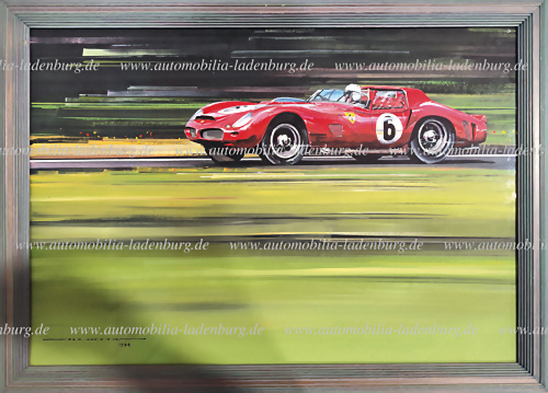 1984, original Gemälde von Nicholas Watts, Olivier Gendebien / Phil Hill auf Ferrari 330TRi (#0816), Sieger 24 Stunden Le Mans 1962, signiert von Nicholas Watts, datiert 1984, hochwertig gerahmt, 57x78cm