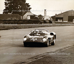 Original s/w Aufnahme Mike Parkes auf Ferrari 330P (#0814), RAC British Grand Prix 1963 Silverstone, 16,5x19cm