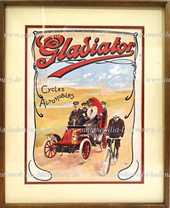 ca. 1908, original Werbeplakat "Gladiator Cycles - Automobiles", Entwurf Charles Tichon "Imp. Kossuth, Paris", im Passepartout, gerahmt 69,5x55,5cm, Rariät
