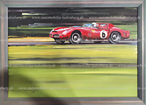1984, original Gemälde von Nicholas Watts, Lorenzo Bandini / Ludovico Scarfiotti auf Ferrari 250P (#0816), Sieger 24 Stunden Le Mans 1963, signiert von Nicholas Watts, datiert 1984, hochwertig gerahmt, 71x82cm