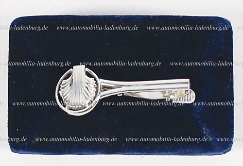Krawattenklammer Shell, Rückseite mit Gravur „Shell Cima“, im Etui, guter Zustand