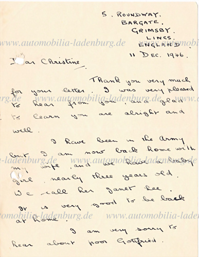 Handgeschriebener Brief (3 Seiten) von Freddie Frith, hier bedankt sich Freddy Frith für einen erhaltenen Brief, ebenso richtet er Weihnachtsgrüße aus