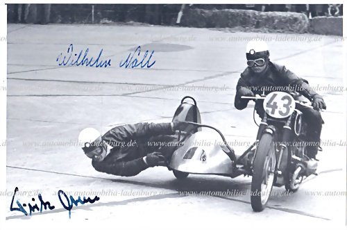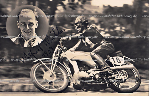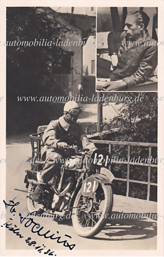 Handsignierte original s/w Aufnahme Hermann Paul Müller auf NSU, 23x17cm
