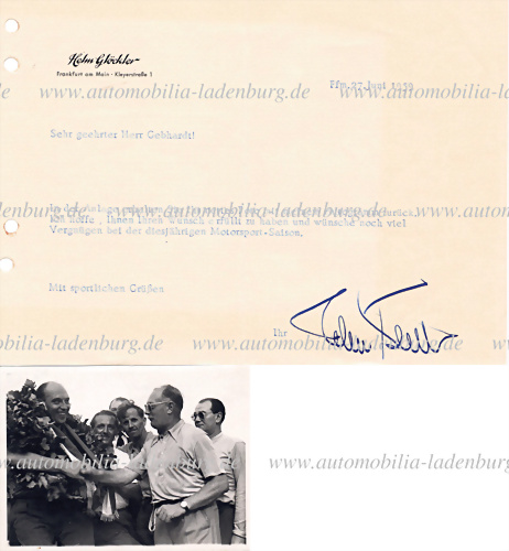 Handsigniertes Schreiben von Helm Glöckler, datiert 27.Juni.1959, dazu original s/w Aufnahme, 8,5x11,5cm