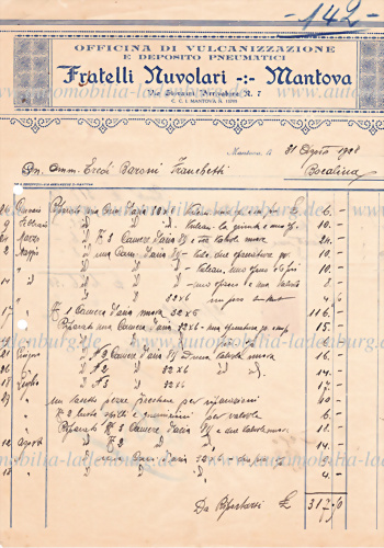 1908, original Rechnung von „Fratelli Nuvolari Mantova“, (Nuvolari´s Geschäft)