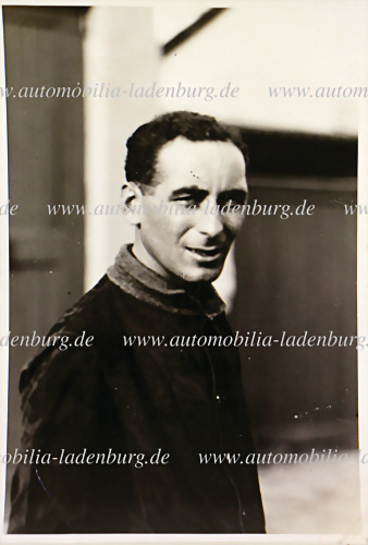 original s/w Aufnahme, Eugenio Siena (Enzo Ferrari´s Beifahrer / Mechaniker), 18x13cm