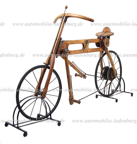 1900, Jugendholzrad im original erhaltenen Zustand mit Fußhebelantrieb auf das Hinterrad, Lenkerhöhe 80 cm, Länge 150 cm