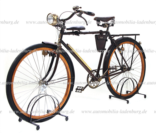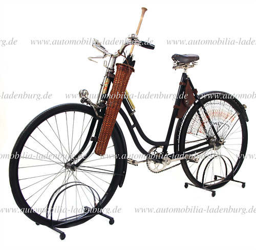 1922, Damenrad mit Kettenschutz, stangenbetätigter Felgenbremse, Dynamobeleuchtung, Werkzeugtasche, F+S Nabe, Gepäckträger mit Tasche, Rocknetz, Originallackierung