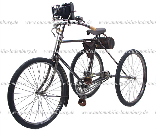 1907, Herrendreirad, original Abingdon Patentachse mit Differential Nr. 379 A, original Pedale Morgan Bros Chain MFRS & Co. Birmingham, Blockkette Abingdon, Original-Lackierung, Fotoapparat am Lenker, Kettenschutz, Luftpumpe, Satteltasche, Klingel, Achsenauftritt, Vorderrad 24 Zoll, Hinterrad 24... mehr
