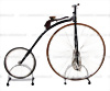1868, Velociped mit Gummireifen, schmiedeeisernem Rahmen, Holzspeichenrädern mit Gummireifen statt Stahlreifen, original Lackierung, original Ledersattel auf Blattfeder, hinterer Löffelbremse über Seilzug, Bronze-Gewichtspedalen, Aufstiegstritt, Bronzelagern, Vorderrad 90 cm, Hinterrad 70 cm, Länge... mehr