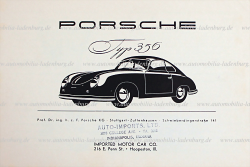 Faltprospekt Porsche 356 „Split Window“, Rückseite mit technischen Angaben Serie „America“, sowie Serie „Super“, 4 Seiten engl. Text
