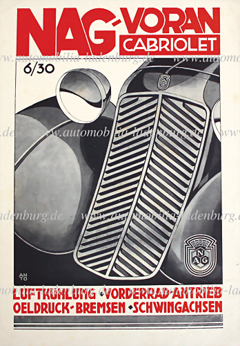 1933, Faltprospekt „NAG-VORAN Cabriolet“ 6/30, 6 Seiten deutscher Text, selten