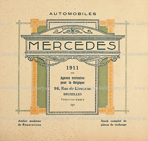 1911, Faltprospekt Preisliste mit technischen Angaben der Mercedes Typen 15HP / 20HP / 30HP / 40HP / 50HP / 70HP / 90HP, 4 Seiten französischer Text, selten