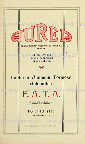 Faltprospekt Aurea 15-18HP „Fabbrica Anonima Torinese Automobili „F.A.T.A.“, 6 Seiten ital. Text, selten