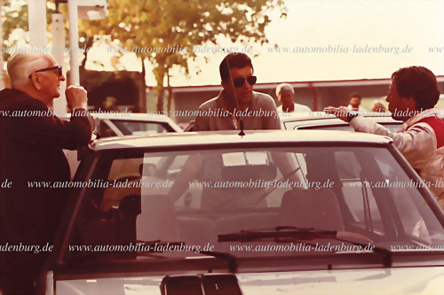 1988, Konvolut 2 original Farbaufnahmen der 90. Geburtstagsfeier von Enzo Ferrari, je 10,2x16cm, Fotos datiert / entwickelt März 1988, Enzo Ferrari verstarb noch im selben Jahr (14.August.1988)
