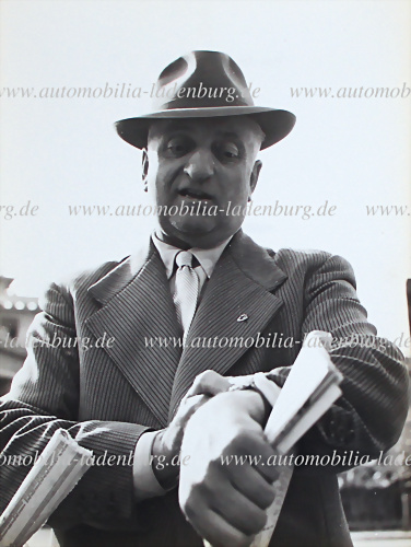 ca. 60er Jahre, original s/w Aufnahme Enzo Ferrari wirft einen Blick auf seine Uhr, 24x18cm, gestempelt „DuFoto Roma“