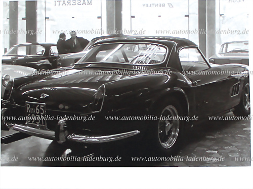 Original s/w Aufnahme Ferrari 250 California, im Verkaufsraum (Kennz. Roma 656931), 18x24cm