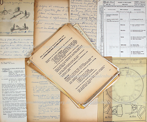 Konvolut 29 Seiten aus dem Nachlass von Giovanni Battista Guidotti, darunter Aufzeichnungen / Dokumentationen verschiedener Alfa Romeo Fahrzeuge bei Testfahrten, u.a. Straßentestzyklus des Alfa Romeo 1900, datiert Oktober 1954; Montageanleitung – Motoreinstellung Alfa Romeo Motor 750B, datiert... mehr