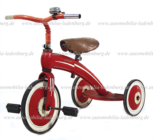 1950, Kinderdreirad "Torpedo", mit Klingel und Vorderradpedalantrieb, Lenkerhöhe 55 cm, Länge 60 cm, im original erhaltenen Zustand