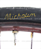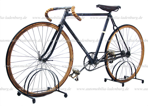 1912, Rennbahnrad mit Holzspeichenrädern und Schlauchreifen, Originallackierung, Ritzel rechts und links am Hinterrad, Pedalhaken, 28 Zoll