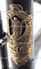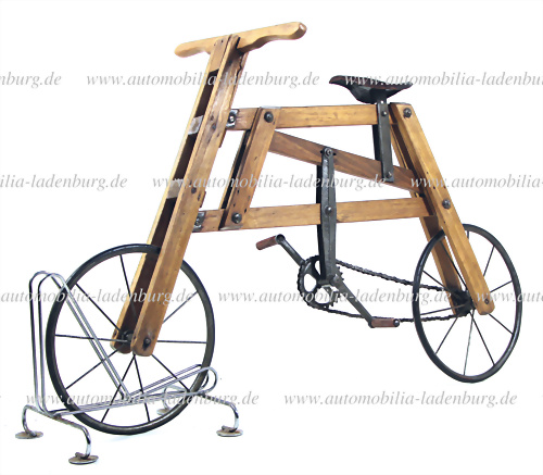 1820, Laufrad als lenkbare Laufmaschine aus Holz mit Korpus in Form eines Tierkopfes (Schlange), Pferdesattel auf Lederriemen, Lenkung, Räder und Gabel nicht original, Vorderrad 70 cm (28 Zoll), Hinterrad 70 cm (28 Zoll), Länge 160 cm, Lenkerhöhe 120 cm