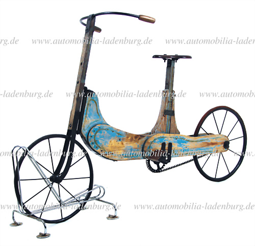 1903, Kinderholzrad mit Kettenantrieb und verstellbaren Rahmenteilen, Lenkerhöhe 80 cm, Länge 120 cm