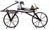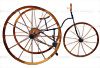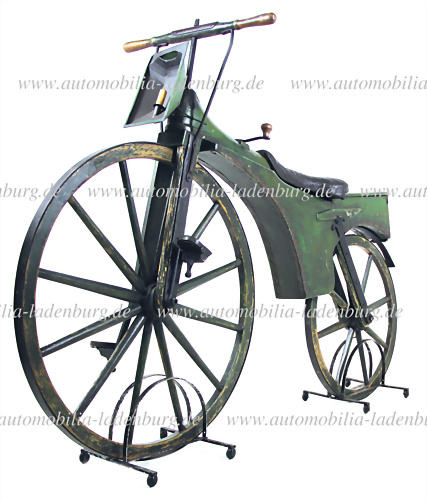 1818, Draisine-Laufrad (alter Nachbau) nach dem Karlsruher Modell des Baron Karl-Friedrich Drais von Sauerbronn (1785–1851), mit Holzrahmen und höhenverstellbarem Sattel, Holzspeichenrädern mit Eisenbereifung und Balancierbrett, Vorderrad 65 cm (25 Zoll), Hinterrad 65 cm (25 Zoll), Länge 180 cm —... mehr