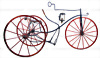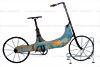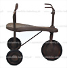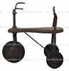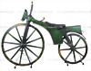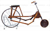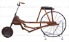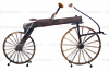 1889, Tricycle in Marke Eigenbau mit schmiedeeisernem Rahmen, Holzkettenblatt vorne und hinten, Holzsattel und Holzlenker, Vorderrad 70 cm (29 Zoll), Hinterrad 110 cm (43 Zoll), Länge 190 cm, Breite 90 cm, Lenkerhöhe 100 cm