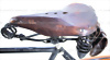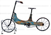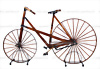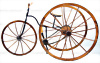 1893, Holzrad mit Tretkurbel und Schwingantrieb auf das Hinterrad, Holzrahmen und Holzspeichenräder mit Eisenbereifung, federndes Vorderrad und Sattel, Originalsattel, Vorderrad 66 cm (26 Zoll), Hinterrad 87 cm (34 Zoll)