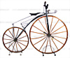 1870, Tretkurbelrad nach dem Vorbild des deutschen Instrumentenmachers Philipp Moritz Fischer aus Schweinfurt, der als erster in Deutschland Pedalen an der Vorderachse anbrachte (Nachbau), mit Holzkastenrahmen und Seilzugbremse, Vorderrad 95 cm (37 Zoll), Hinterrad 70 cm (27 Zoll), Länge 180 cm,... mehr
