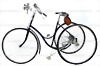 1890, Tricycle ohne Kette (Star-Antrieb) mit Rahmen- und Lenkernummer 227, vorderem und rechtem Hinterrad mit Radialspeichen, linkem Hinterrad mit Tangentialspeichen, Trethebelantrieb auf die Hinterräder mit Rückhaltefeder in der Achse zur Rückführung der Hebel in die Ausgangsposition, vier Bown’s... mehr