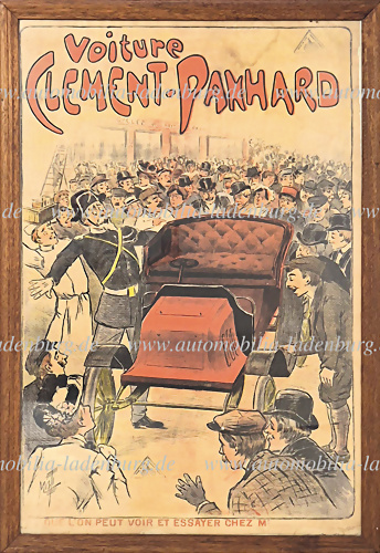 Um 1900, Litographie Werbeplakat Clement-Panhard, Entwurf Misti, auf Leinwand, gerahmt, Glas gesprungen, kleine Einrisse, dem Alter entsprechend guter Zustand, 123x84 cm.
