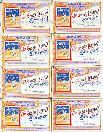 Konvolut 8 Verkaufskataloge ca. 1913 der belgischen Firma "De Groote Leeuw", ihrer Zeit Marktführer von "Swift"-Fahrrädern in Belgien, insg. je 16 Seiten Text, teils mit losen Seiten oder Wasserflecken, sonst guter Zustand