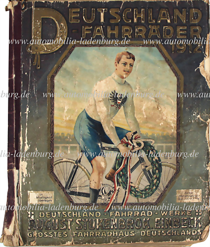 1912, Verkaufskatalog "Deutsche Fahrräder" August Stukenbrock Einbeck, Katalog für Fahrräder, Uhren, Waffen, Spielzeug, Schmuck u. Accesoires, deutliche Gebrauchspuren u. Beschädigungen