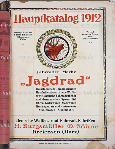 1914, Verkaufskatalog "Jagdrad" H.Burgsmüller & Söhne, Katalog für Fahrräder, Waffen u. Nähmaschine, dem Alter ensprechend guter Zustand