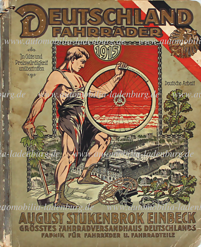 1915, Verkaufskatalog "Deutschland Fahrräder" August Stukenbrock Einbeck, Katalog für Fahrräder, Uhren, Waffen, Spielzeug, Schmuck u. Accesoires, inkl. blanko Bestellscheine, dem Alter entsprechend guter Zustand