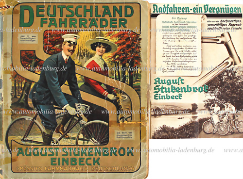 Konvolut 2tlg., darunter "Deutschland Fährräder" Verkaufskatalog um 1915 August Stukenbrock Einbeck, sowie Vorzug-Heft von "Deutschland Fahrräder" Verkaufskatalog 30er Jahre, deutliche Gebrauchsspuren, Bindung geklebt