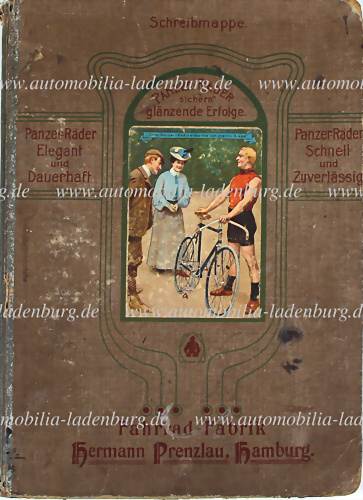 Konvolut 2tlg., Schreibmappen "Panzer-Räder" Fahrradfabrik Hermann Prenzlau, mit Kalender für 1906 & 1907, Notizen auf Innenseite sowie altersbedingte Gebrauchsspuren