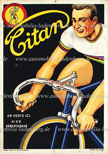 1960er Jahre Original Klapp-Werbetafel "Das große Continental Fahrradreifen-Programm", 46x59cm, mit Halterung an Rückseite und Beschädigung oben links