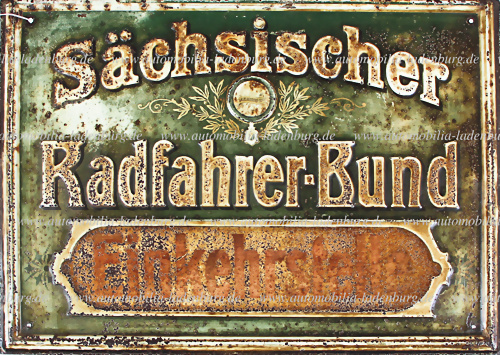 lithografiertes Blechschild, "Sächsischer Radfahrer-Bund- Einkehrstelle", 41,7x30cm