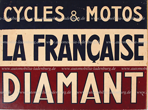 lithografiertes Händler Blechschild, "Cycles & Motos - La Francaise Diamant", leichte Beschädigungen, 43x33 cm