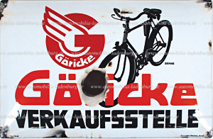 1930er Jahre, Emailleschild "Göricke Verkaufstelle", Hersteller Boos & Hahn Ortenberg, 33x50cm, großer Lackabplatzer mittig