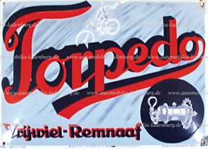 1927, Emailleschild "Torpedo Vrijwiel-Remnaaf", Hersteller Horicks Brüssel / Frankfurter Emaillir-Werke, 36x49, leichte Lackabplatzer am Rand