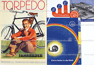 Konvolut 3tlg., darunter 30er Jahre Verkaufskatalog Torpedo Fahrräder Weilwerke AG, sowie 50er Jahre Werbebroschüren zu Fichtel & Sachs Torpedo Freilauf Nabe und F&S Erzeugnisse, guter Zustand