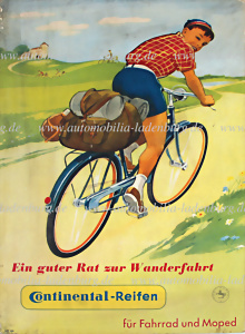 1960er Jahre, Werbeplakat Continental-Reifen "Ein guter Rat zur Wanderfahrt" (WR 288), 42x29cm, auf Pappe gezogen mit Ständer, altersbedingte Verschmutzungen und leichte Beschädigungen am Rand